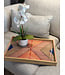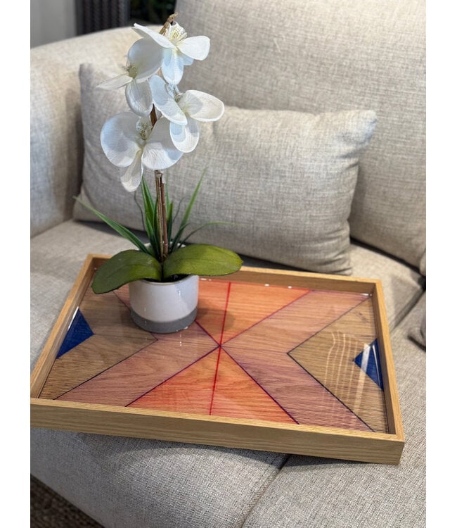 Statement decorative tray crafted with wood frame, beautiful geometric inlay design. Finished with a glossy resin surface, it blends modern artistry with natural textures - perfect for elevating a coffee table, console, or bar
