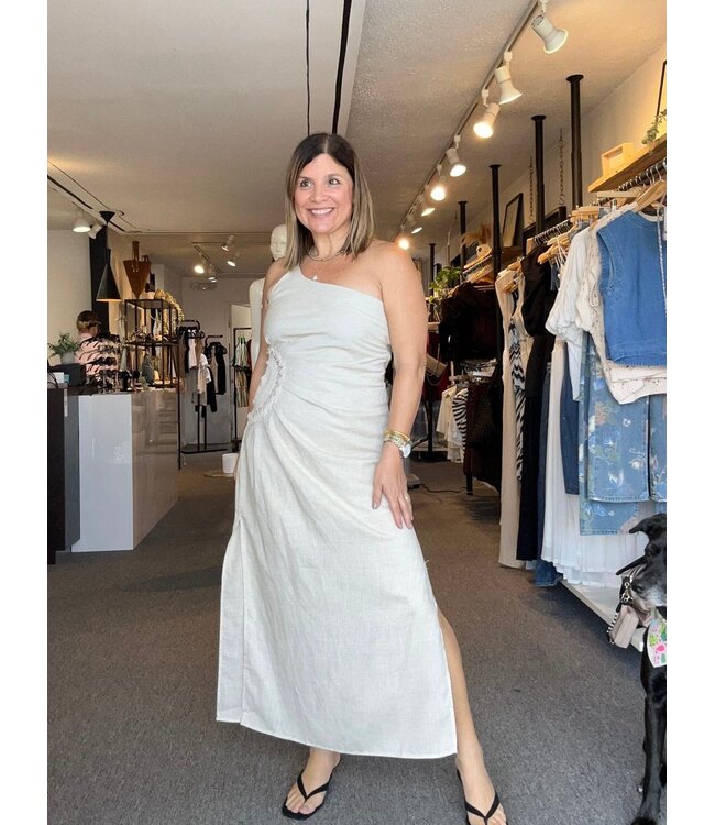 One Shoulder Crochet Drape Dress