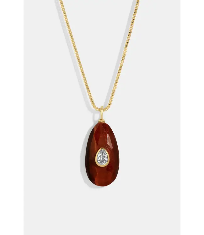 MaterialsMetal: Premium gold-plated brassGemstones: Tiger’s Eye & White TopazLobster clasp fastening